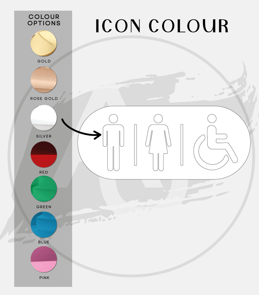Add a touch of luxury to your space with this elegant acrylic toilet sign featuring women's, men's and disabled icons all in one.