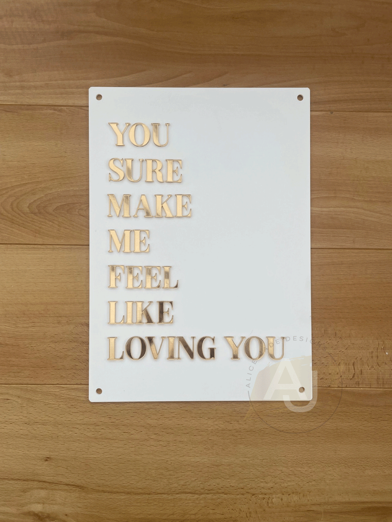 Wall Art 3D Quote Acrylic Sign | 'You sure make me feel like loving you'
