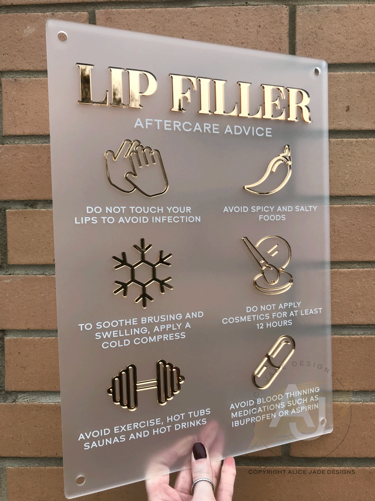 Lip Filler Aftercare Advice Acrylic A3 Wall Sign | Beauty Sign | Business Sign | Spa Sign | Salon Sign | Salon Decor