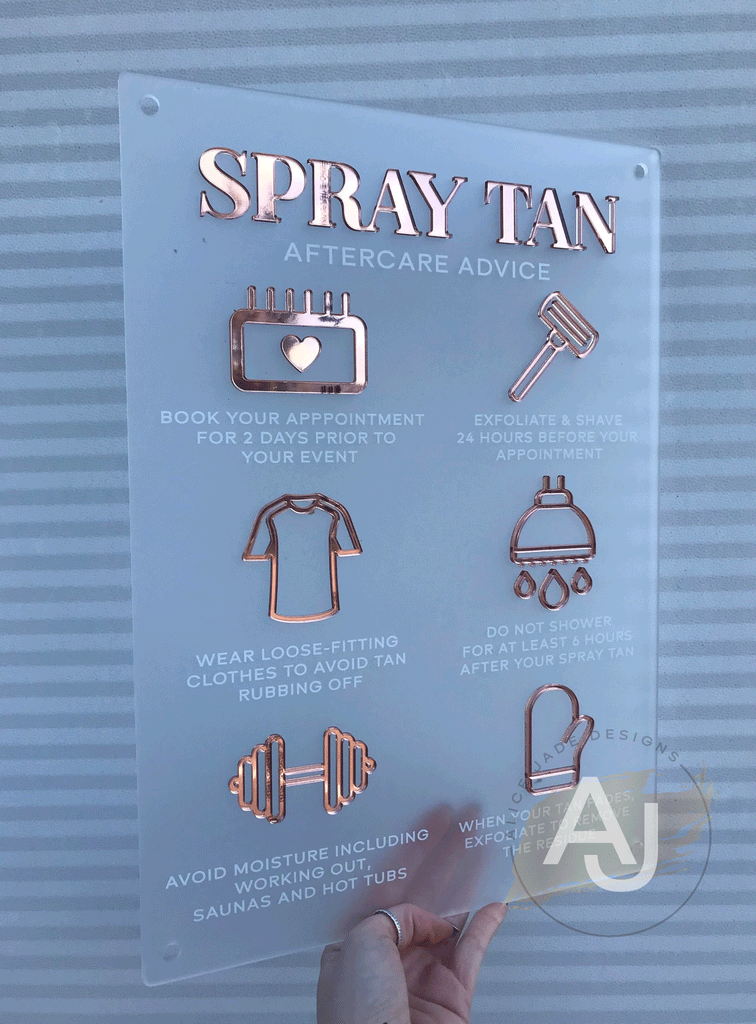 Spray Tan Aftercare Advice Acrylic A3 Wall Sign | Studio Sign | Business Sign | Salon Sign | Beauty Sign