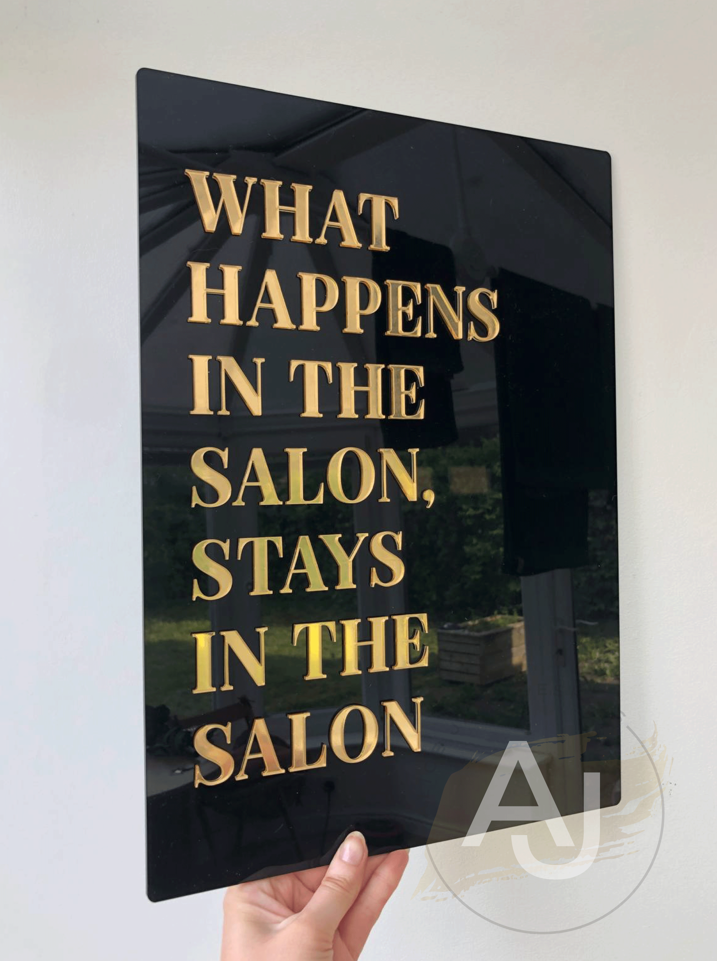 Wall Art 3D Quote Acrylic Sign | 'What happens in the salon'